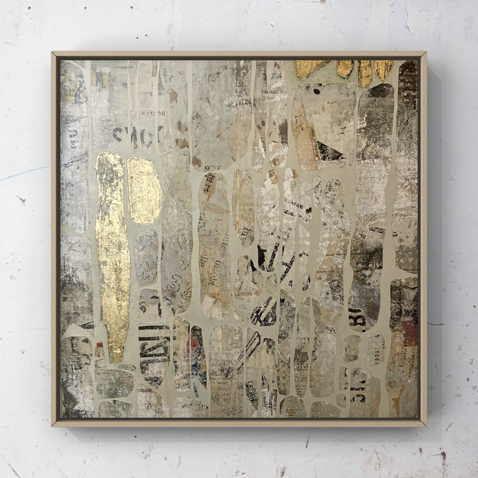 For the worn wall works I’m building up layers with all sorts of paper ephemera and monoprinting marks and painting areas, which then get worn back to reveal new marks. This process is repeated several times before I then work on developing the ‘disrupted’ pattern of the pieces of the wall. I’m then looking to see if the work needs broader differences in it to engage the viewer and how I can emphasize something more in the piece. I’m not interested in painting a picture of the wall – but in representing aspects of the surface and pattern which entrance me.