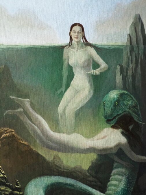 When we have a look at John William Waterhouse’s acclaimed painting Odysseus and the Sirens, it is seen that Waterhouse depicts the famous scene from Homer’s Odyssey with an artistic expression that is readily available to an audience that is familiar with this epic novel. Apart from her aesthetic expression that signals her appreciation of the techniques and aesthetic language of the old masters, the scenes and the intricate landscapes filled with the alien beings and uncharted lands of her inner world sets her works of art apart from her artistic predecessors. Being brave enough to seek into her soul and delve into a realm that she never tapped in before, Şentürk shares her own inner Odyssey though her paintings that are brought forth from her journeys into the depths of her psyche. Being pulled into this personal Introspection, we as the audience are similarly prompted to explore the depths of our being as we ponder upon these captivating scenes of Şentürk’s brilliant artistry.