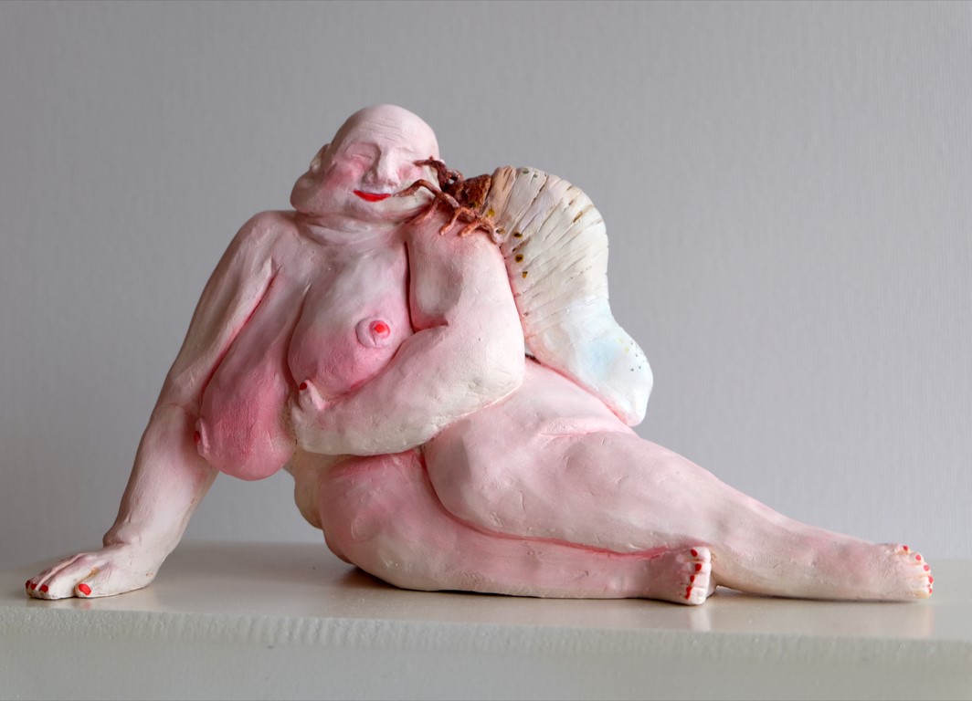 The “Woman Figurines” from the series “The Beauties of Civilization Fought for Beauties” in 2018, re-examines the image of women that began to form in the Paleolithic Age. In the above text, the artist explains the formation of the series by sharing a piece from the series main text. The formation of this selection, which are sculptures created in an ostentatious and sloppy painted style in a primitive and rough way, is to criticize how today’s society reconsiders the image of women. Goddess figurines, which represent the fertility of a period as well as birth, tell how they are depreciated by their own children today. The dung worms, fruit and meat worms, represent these children who are trying to destroy the representations of their mother from ancient times to the present.