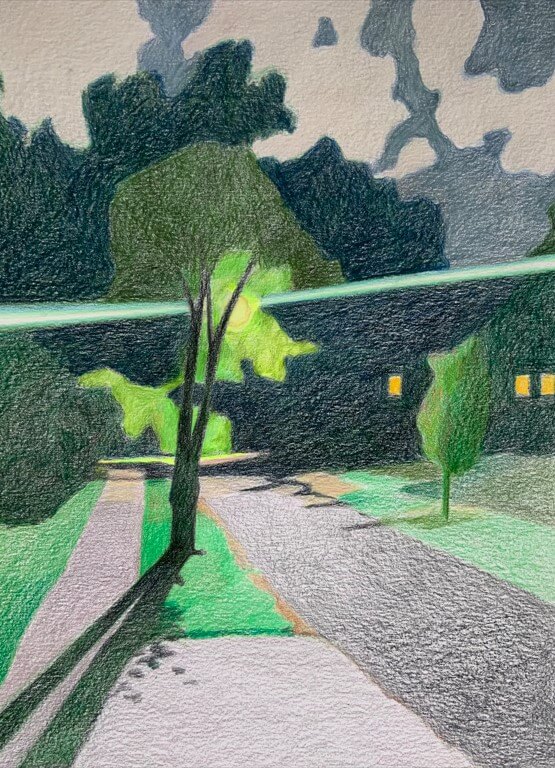 During the pandemic I made a large number of drawings. I find the use of colored pencils to be a humble medium— but also a satisfying one as it is meditative, simple, and portable.