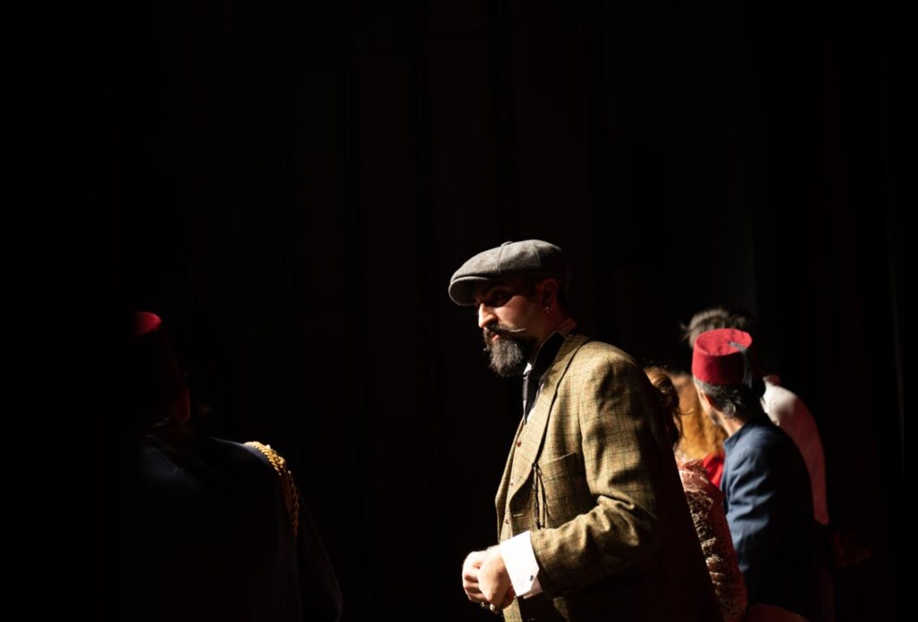 İstibdat Kumpanyası is a mix of traditional Turkish theater and modern theater. We watch sweet harmony of both types of theater. It is a fun play, but it is a masterfully written work as well. It was a very fun play to direct, but also a difficult one. I play the character of Samuel in the play. He came from France, his mother is Turkish and his father is a French. He has a kind and naive character. A character forcibly pushed from a modern structure into an interesting theater troupe. I play with fun and love.