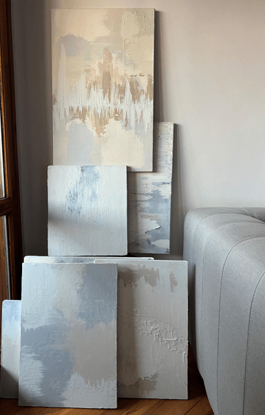 I went to a calligraphy course, I also do marbling works, but I mainly work on plain and abstract acrylics. I like to work with non-figurative, light colors.